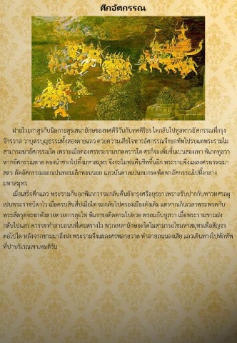 สำมำรถฆ์ำอัศกรรณได์ เพรำะเมื่อต์องศรพระรำมขำดครำวใด ศรก็จะเพิ่มขึ้นเป์นสองเท์ำ พิเภกทูลว์ำ