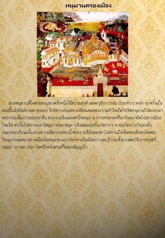 พระรำมเพื่อถวำยอยุธยำคืน พระรำมจึงแผลงศรให์หนุมำน หำกศรตกลงที่ใด ก็จะยกทัพไปสร์ำงเมือง
