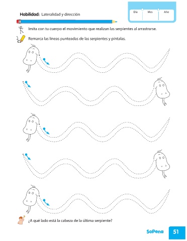 Remarca las líneas punteadas de las serpientes y píntalas.