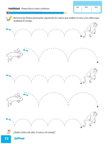 Remarca las líneas punteadas siguiendo los saltos que realizó la rana y los saltos que