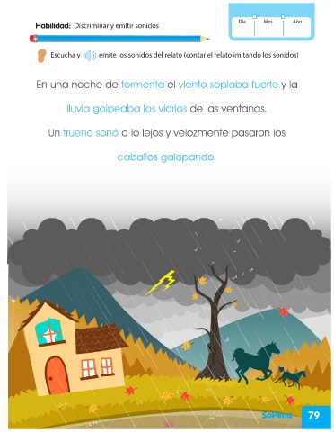 Escucha y emite los sonidos del relato (contar el relato imitando los sonidos)