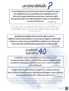 ไม่ว่าการศึกษาในยุค 4.0 จะปฏิรูปออกมามีหน้าตาเป็นอย่างไร มหาวิทยาลัยในยุค 4.0 ก็จ�าเป็นต้องฟื้นฟู