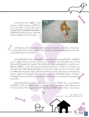 และฉลาด ฉะนั้นขอแทรกเกร็ดความรู้เล็กๆ น้อยๆ ส�าหรับการเลี้ยงสุนัขว่าต้องดูแลพวกเขาอย่างไร