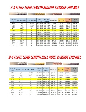 2-4 FLUTE LONG LENGTH SQUARE CARBIDE END MILL 2-4 FLUTE LONG LENGTH BALL NOSE CARBIDE END MILL