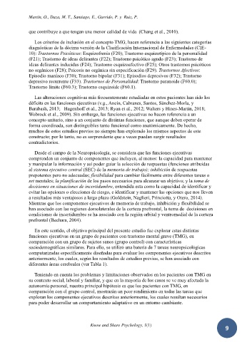 déficits en las funciones ejecutivas (v.g., Ancín, Cabranes, Santos, Sánchez-Morla, y