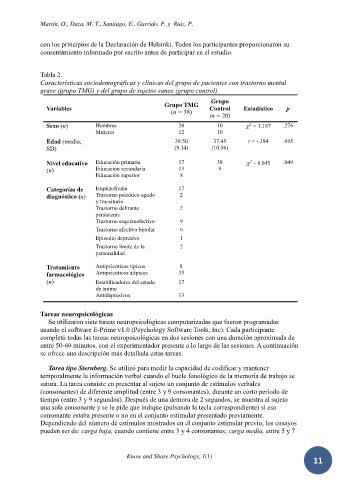 completó todas las tareas neuropsicológicas en dos sesiones con una duración aproximada de