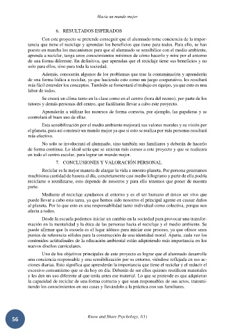 mación en la mentalidad y la ética de las personas hacia el reciclaje y el medio ambiente. Se