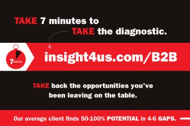 TAKE 7 minutes to TAKE the diagnostic. insight4us.com/B2B 7 MINUTES TAKE back the opportunities you’ve been leaving on the table. Our average client finds 50-100% POTENTIAL in 4-6 GAPS.