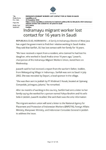Title INDRAMAYU MIGRANT WORKER LOST CONTACT FOR 16 YEARS IN SAUDI