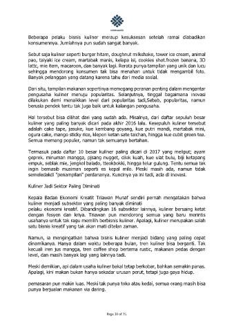 pelaku ekonomi kreatif. Dibandingkan 16 subsektor lainnya, kuliner bersaing ketat