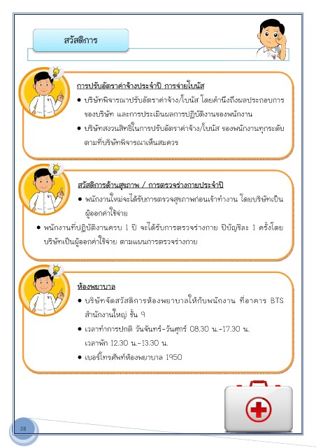 • •• • พนักงานที่ปฏิบัติงานครบ พนักงานที่ปฏิบัติงานครบ 1 ป จะไดรับการตรวจรางกาย ปบัญชีละ ป จะไดรับการตรวจรางกาย ปบัญชีละ 1 ครั้งโดย