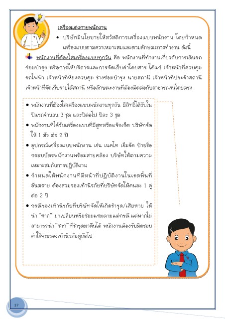 พนักงานที่ตองใสเครื่องแบบทุกวันพนักงานที่ตองใสเครื่องแบบทุกวัน คือ พนักงานที่ทํางานเกี่ยวกับการเดินรถพนักงานที่ทํางานเกี่ยวกับการเดินรถ