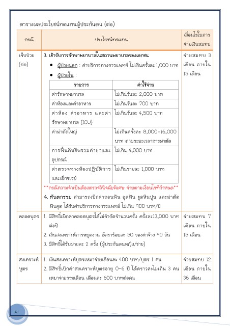 ตารางผลประโยชนทดแทนผูประกันตน (ตอ)