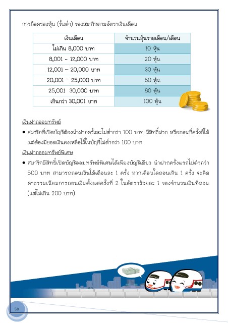 การถือครองหุน (ขั้นต่ํา) ของสมาชิกตามอัตราเงินเดือนของสมาชิกตามอัตราเงินเดือน