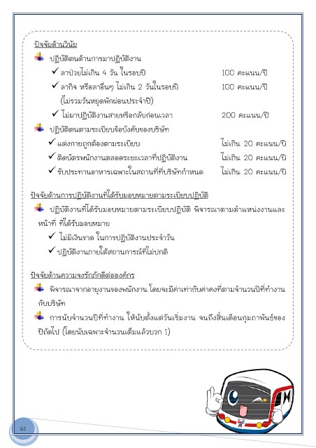 ติดบัตรพนักงานตลอดติดบัตรพนักงานตลอดระยะเวลาที่ปฏิบัติงาน ไมเกินมเกิน 20 คะแนน/ป