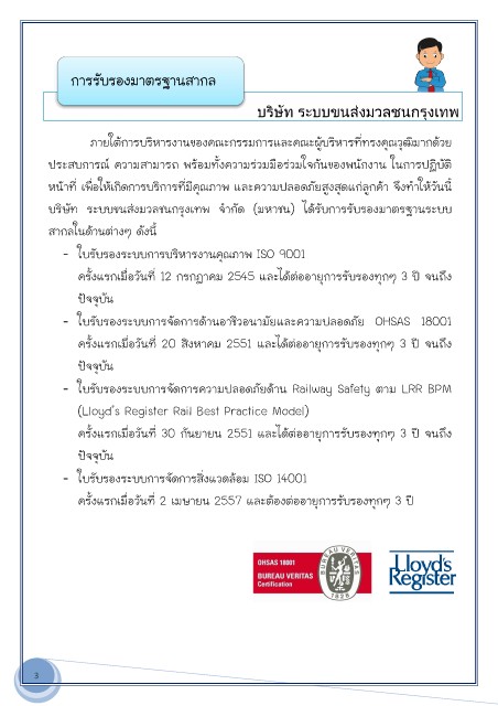 บริษัท ระบบขนสงมวลชนกรุงเทพระบบขนสงมวลชนกรุงเทพ จํากัด (มหาชน) ไดรับการรับรองมไดรับการรับรองมาตรฐานระบบ