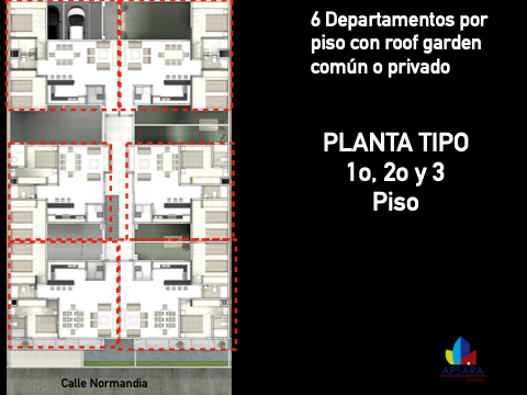 6 Departamentos por piso con roof garden comĂșn o privado PLANTA TIPO 1o, 2o y 3 Piso Calle Normandia