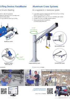 solution for boosting productivity. The use of Schmalz vacuum lifters and crane systems 360°rotation JumboErgo VacuMaster Comfort VacuMaster Comfort Column-mounted jib crane Overhead crane system