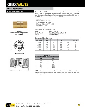 61-700 SERIES (MODEL CV) The Apollo Model CV check valve is ideally suited for cold water, and air