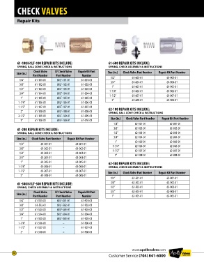 1-1/2” 61-207-01 61-007-01 Size (in.) Check Valve Part Number Repair Kit Part Number
