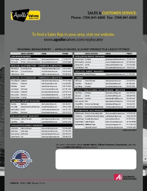 REGIONAL MANAGEMENT – APOLLO VALVES, ELKHART PRODUCTS & LASCO FITTINGS