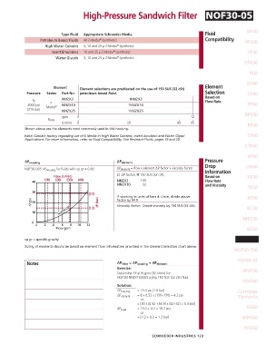 NOF30-D05 ∆P housing for fluids with sp gr = 0.86: ∆P element = flow x element ∆P factor x viscosity factor Drop LW60
