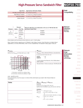 NOF50-760 ∆P housing for fluids with sp gr = 0.86: ∆P element = flow x element ∆P factor x viscosity factor Drop LW60