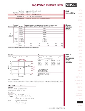 MHS60 ∆P housing for fluids with sp gr = 0.86: ∆P element = flow x element ∆P factor x viscosity factor Drop KF30