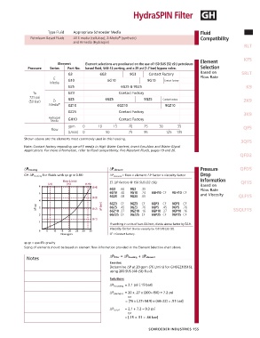 GH ∆P housing for fluids with sp gr = 0.86: ∆P element = flow x element ∆P factor x viscosity factor Drop