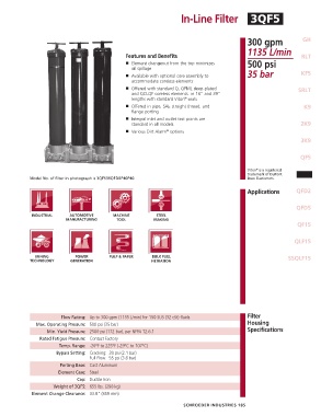 Flow Rating: Up to 300 gpm (1135 L/min) for 150 SUS (32 cSt) fluids Filter