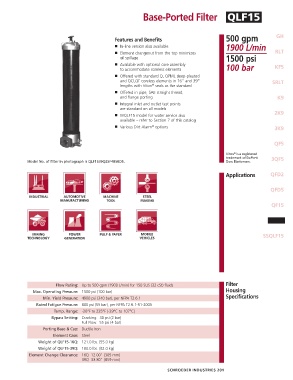 Flow Rating: Up to 500 gpm (1900 L/min) for 150 SUS (32 cSt) fluids Filter