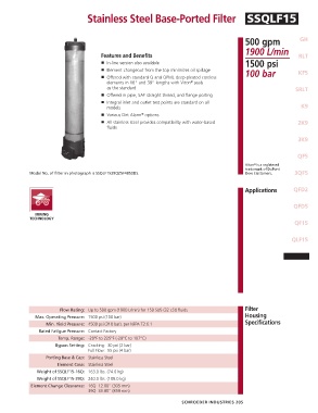 Flow Rating: Up to 500 gpm (1900 L/min) for 150 SUS (32 cSt) fluids Filter