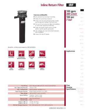 Flow Rating: Up to 100 gpm (380 L/min) for 150 SUS (32 cSt) fluids Filter