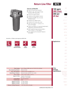 Flow Rating: Up to 100 gpm (380 L/min) for 150 SUS (32 cSt) fluids Filter MRT