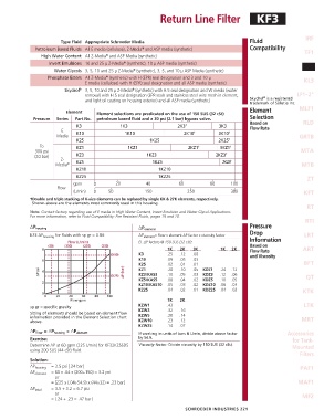 KF3 ∆P housing for fluids with sp gr = 0.86: ∆P element = flow x element ∆P factor x viscosity factor Drop LRT