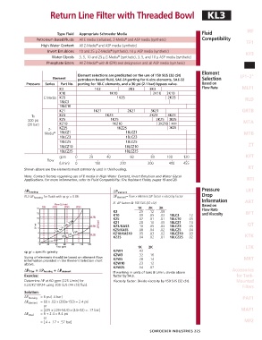 KL3 ∆P housing for fluids with sp gr = 0.86: ∆P element = flow x element ∆P factor x viscosity factor Drop
