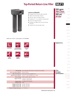 Flow Rating: Up to 200 gpm (760 L/min) for 150 SUS (32 cSt) fluids Filter MRT