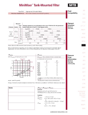 MTB ∆P housing for fluids with sp gr = 0.86: ∆P element = flow x element ∆P factor x viscosity factor Drop RT
