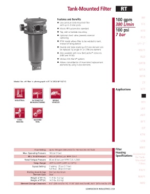 Flow Rating: Up to 100 gpm (380 L/min) for 150 SUS (32 cSt) fluids Filter