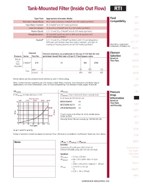 RT ∆P housing for fluids with sp gr = 0.86: ∆P element = flow x element ∆P factor x viscosity factor Drop