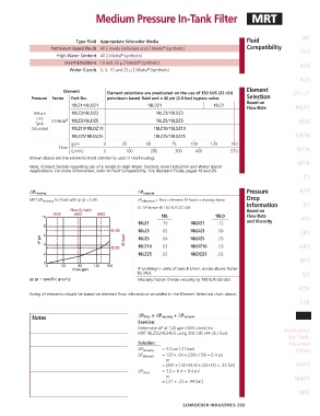MRT ∆P housing for fluids with sp gr = 0.86: ∆P element = flow x element ∆P factor x viscosity factor