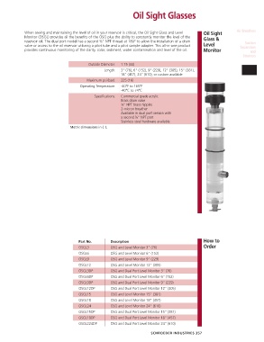 When seeing and maintaining the level of oil in your reservoir is critical, the Oil Sight Glass and Level Oil Sight Air Breathers