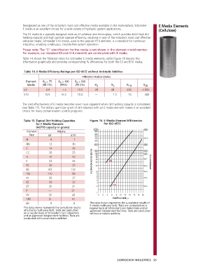 Table 15. Typical Dirt Holding Capacities Figure 16. E Media Element Efficiencies