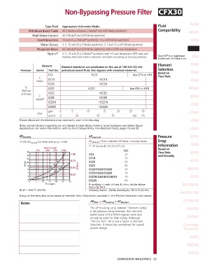 CFX30 ∆P housing for fluids with sp gr = 0.86: ∆P element = flow x element ∆P factor x viscosity factor Drop