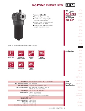 Flow Rating: Up to 75 gpm (284 L/min) for 150 SUS (32 cSt) fluids Filter