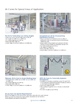 Flat Jib for Particularly Low Ceiling Heights Articulated arm Jib for Circumventing