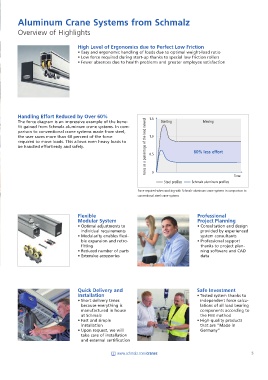 Force required when working with Schmalz aluminum crane systems in comparison to