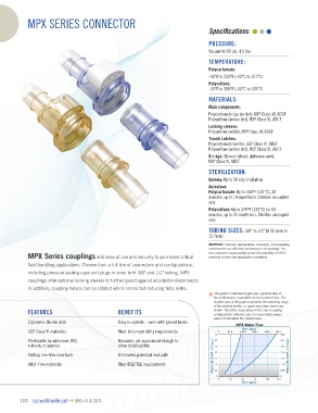 including pressure sealing caps and plugs in sizes to fit 3/8" and 1/2" tubing. MPX