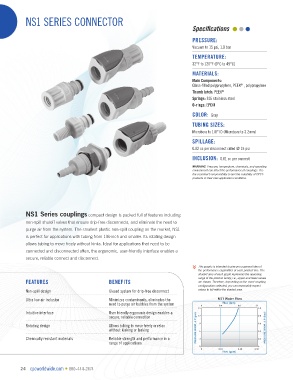 purge air from the system. The smallest plastic non-spill coupling on the market, NS1