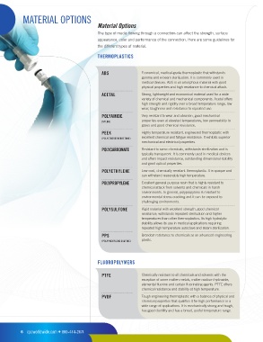 POLYCARBONATE Resistant to some chemicals, withstands sterilization and is